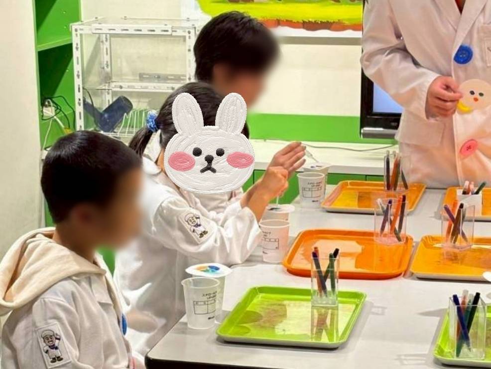 ねるねるねるねを教材に化学反応を説明してもらいながら、トッピングや味を選び作ります。