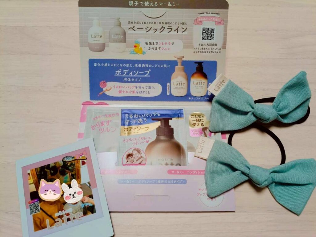 記念にチェキを撮り、結んだリボンと試供品をおみやげでいただきました!太っ腹!