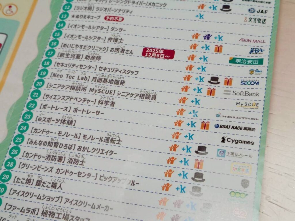 8つのお仕事を体験したスケジュールはこちら。